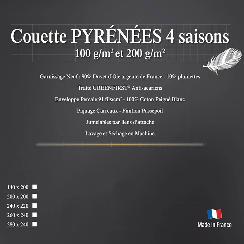 Nous vous présentons la couette Pyrénées , naturelle, fabriquée en France.
