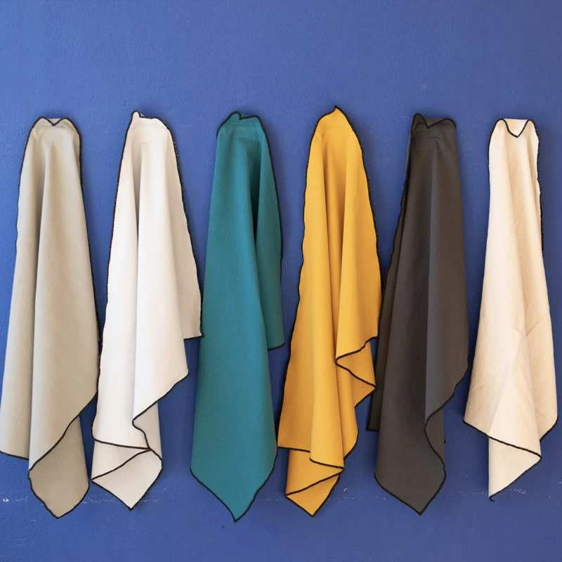 La Compagnie du Blanc vous présente le lot de 6 serviettes de table 100% coton lavé, pour un aspect lin, avec une finition tout autour en noir. Des serviettes de table de qualité pour un usage quotidien. A assortir éventuellement avec le modèle de nappe disponible ou à composer avec d’autres nappes. Facile à coordonner.