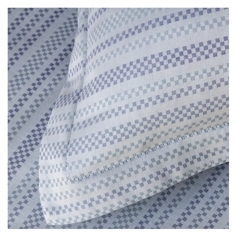 Voici la dernière déclinaison du modèle MANHATTAN, dans un camaieu de bleu, reprenant les coloris de la palette de couleurs de la collection satin de coton 120 fils. Du marine, du bleu orage et une touche de gris platine, pour un rendu chic et intemporel. On adore !