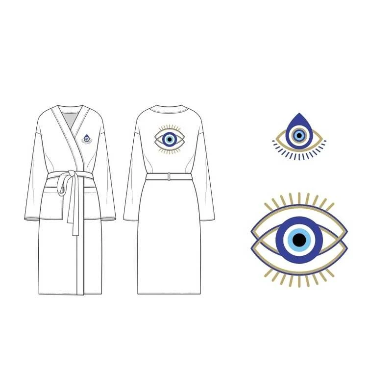 Jolies broderies coté coeur et dans le dos pour ce modèle de peignoirs fantaisie motif oeil. Article en 100% Coton de haute qualité, ce peignoir est la version haut de gamme de la sortie de bain éponge. Hyper absorbant, vous bénéficierez de sa douceur et son moelleux exceptionnel. Cocooning !