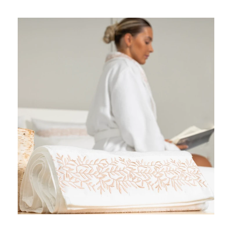 Découvrez la nouvelle collection de Peignoirs de Bain disponible avec Finition Col Châle, avec une somptueuse broderie tout le long du col.