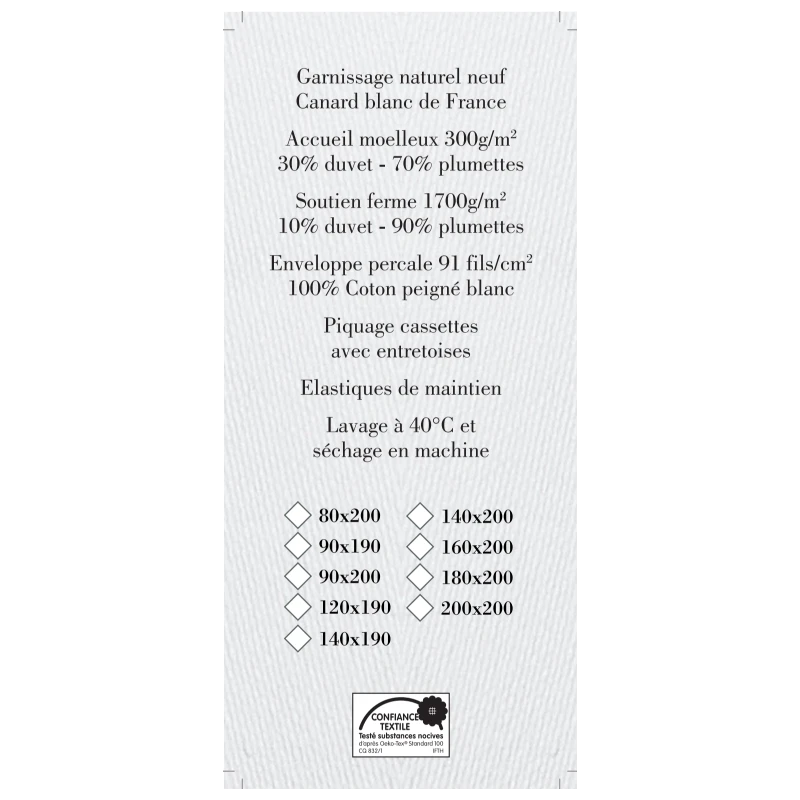 - Soutien Ferme 1700 G/M2 – 10% Duvet / 90% Plumettes