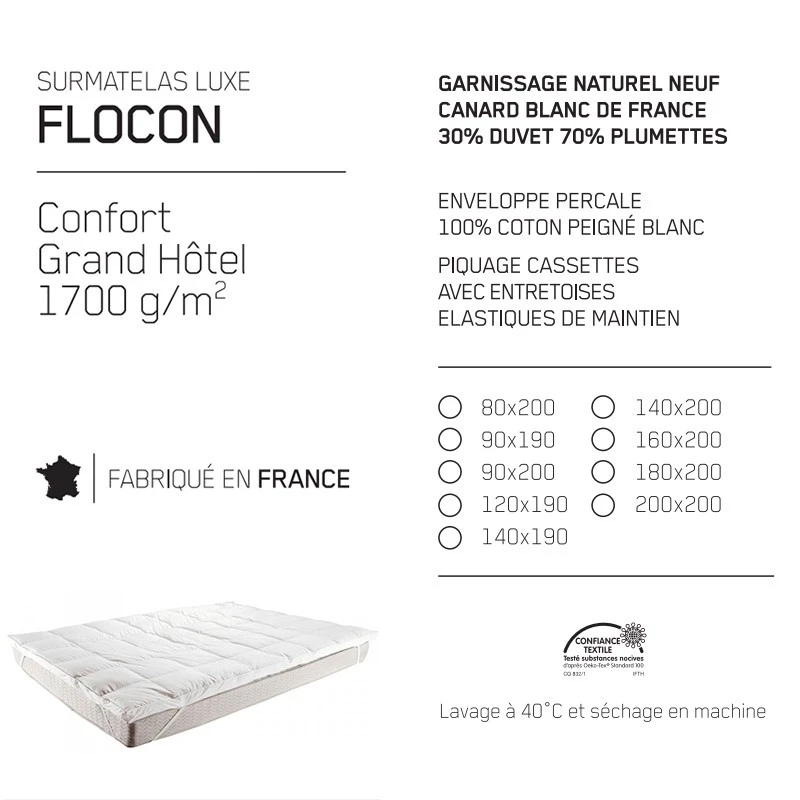 Le Surmatelas Flocon Plumes et Duvet est utilisé dans les grands hotels.